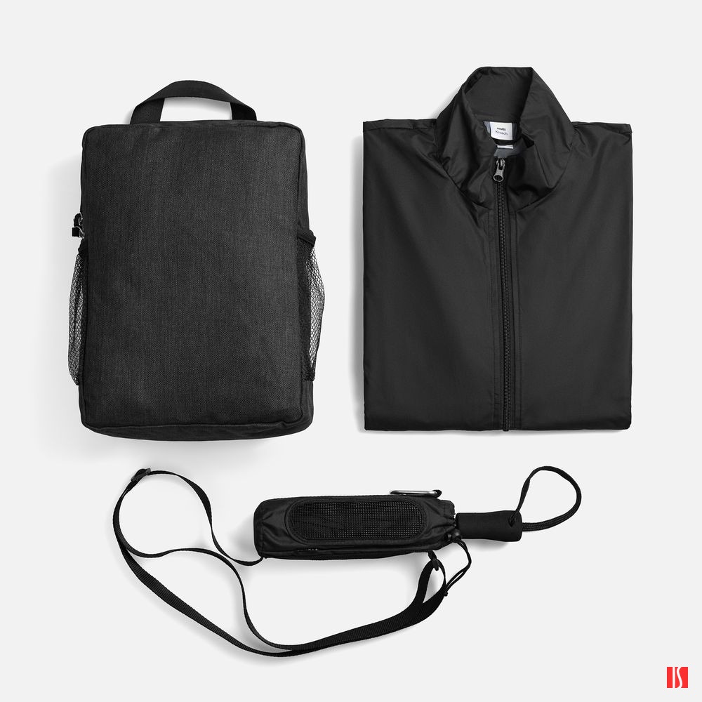 Autumnity — набор с особым осенним настроением. Практичная и лаконичная ветровка в комплекте с компактным зонтом надежно защитят от капризов погоды, позволяя оставаться на высоте в любой ситуации. А легкий вместительный рюкзак станет незаменимым спутником в любых путешествиях в городе и за его пределами.Рюкзак выдерживает нагрузку до 6 кг. Заказать с нанесением логотипа от компании «Синтезис».