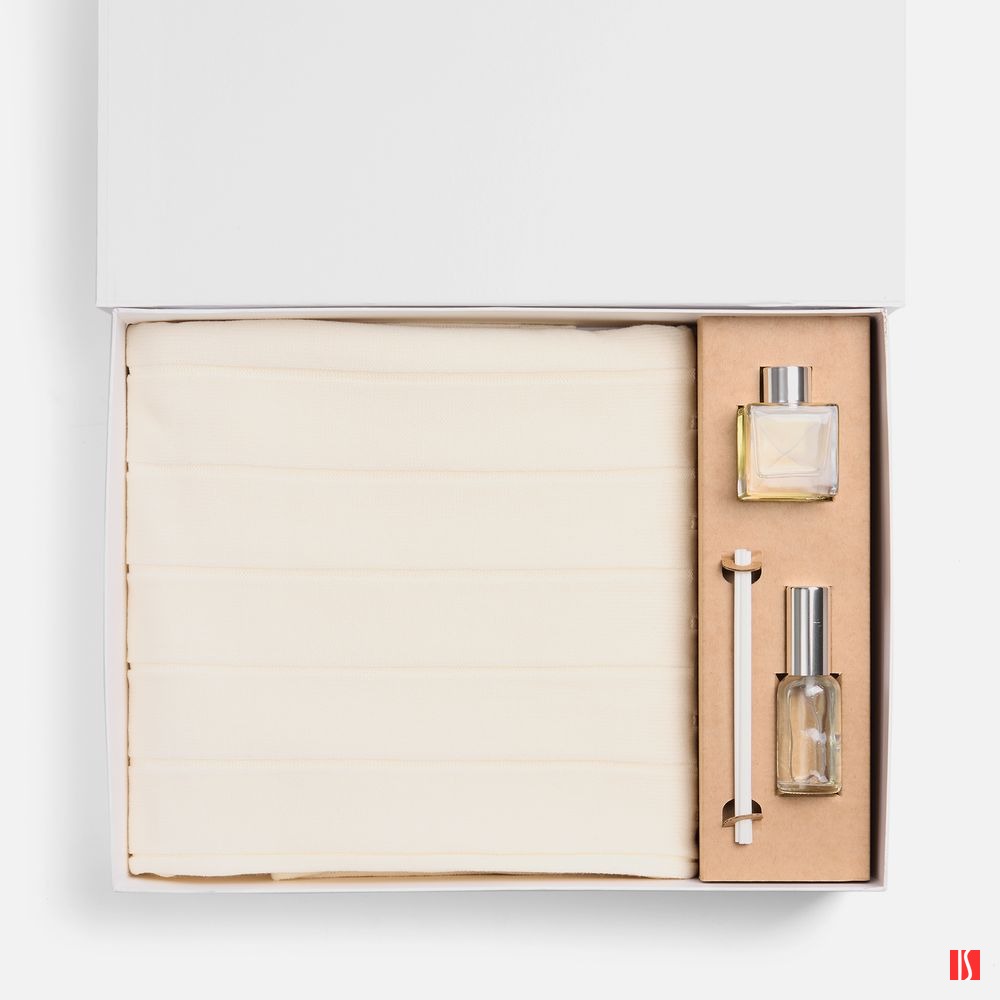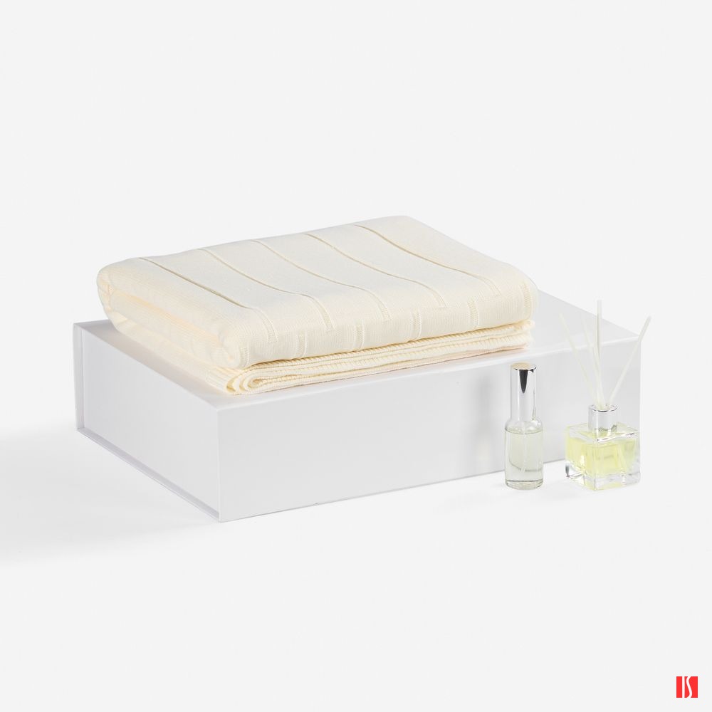 Мягкий плед с элегантным узором подарит комфорт и тепло, а стильный диффузор наполнит пространство нежными, свежими нотами, превращая каждый момент в маленький ритуал наслаждения.