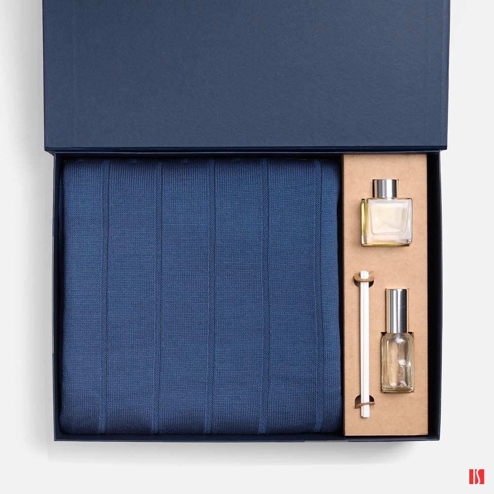 плед - акрил 100%, плотность 310 г/м² ; флакон - стекло, палочки из файбера; коробка - переплетный картон, бумага Classy Covers