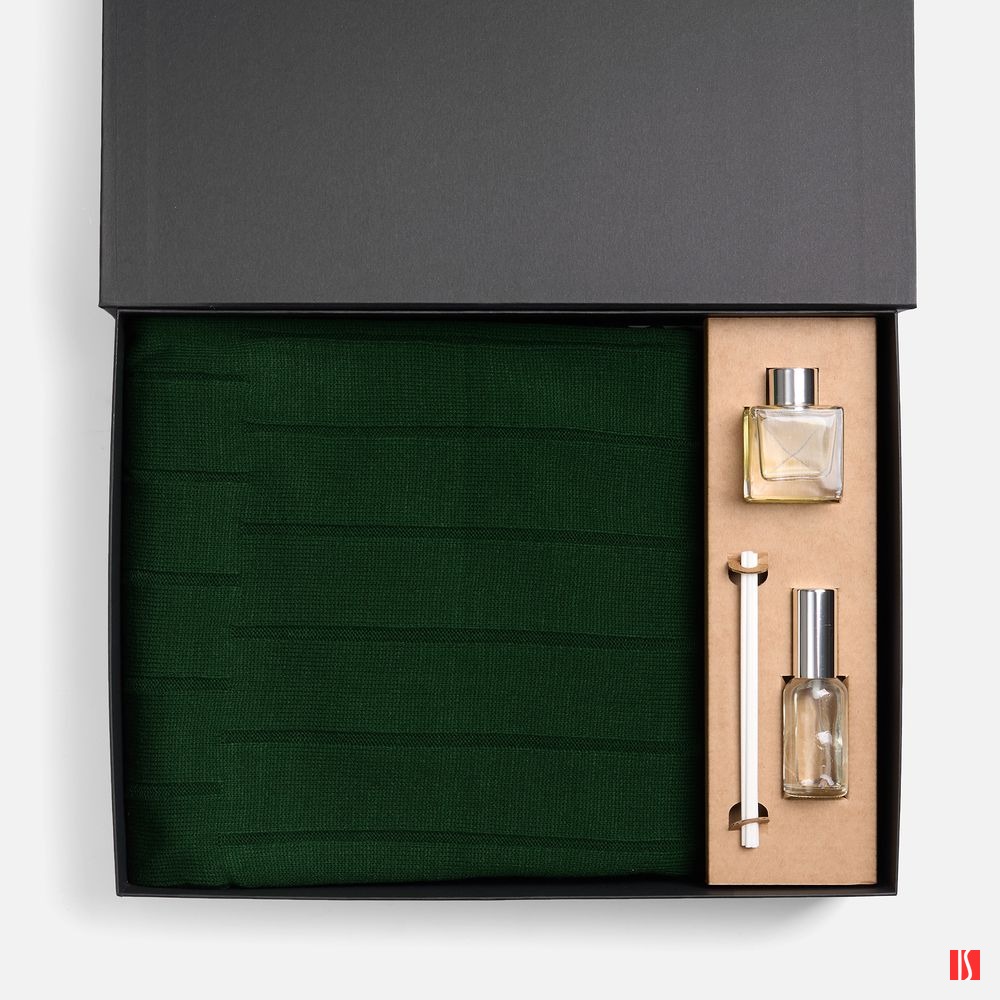 Мягкий плед с элегантным узором подарит комфорт и тепло, а стильный диффузор наполнит пространство нежными, свежими нотами, превращая каждый момент в маленький ритуал наслаждения.