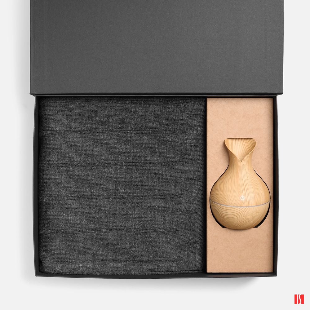 Плед с мягкой текстурой приглашает расслабиться в тепле, а изящный увлажнитель-ароматизатор создает в помещении атмосферу гармонии.