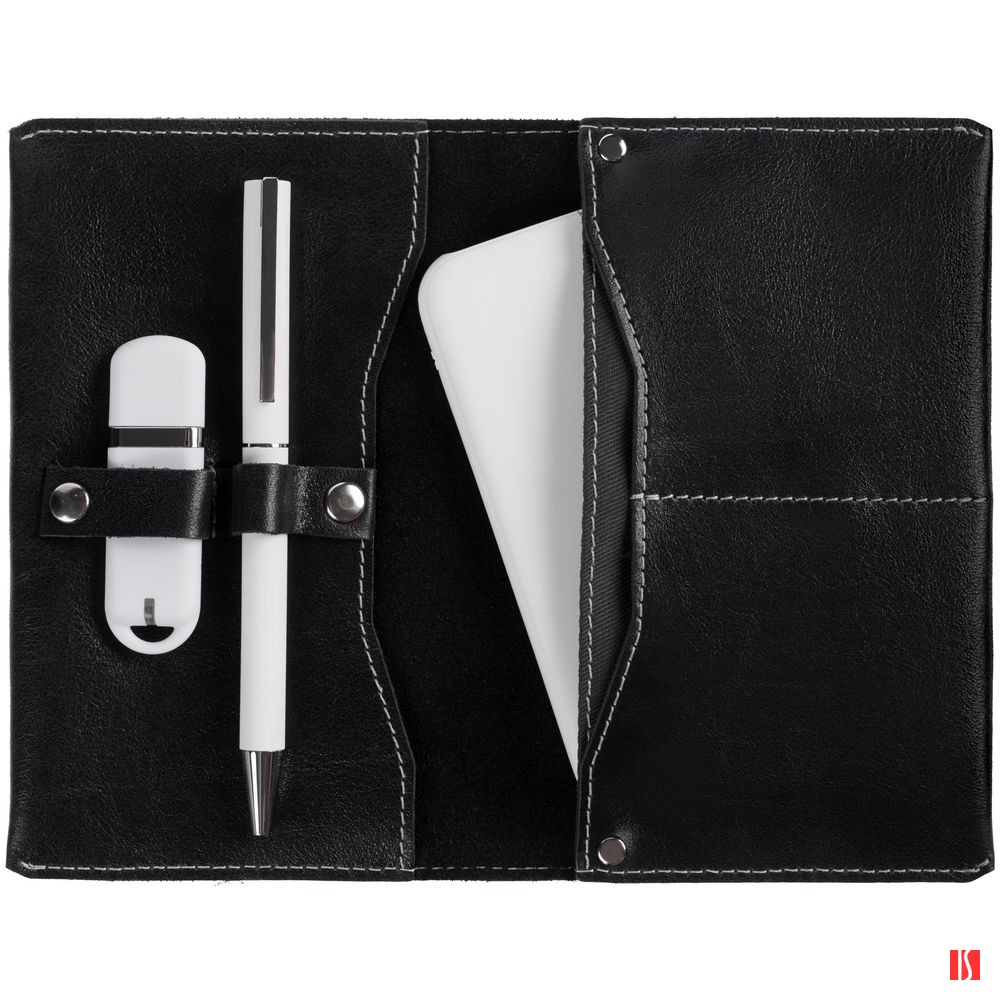 Все самое необходимое легко помещается в удобный кожаный футляр и не теряется при перемещениях с места на место. Заказать с нанесением логотипа от компании «Синтезис».