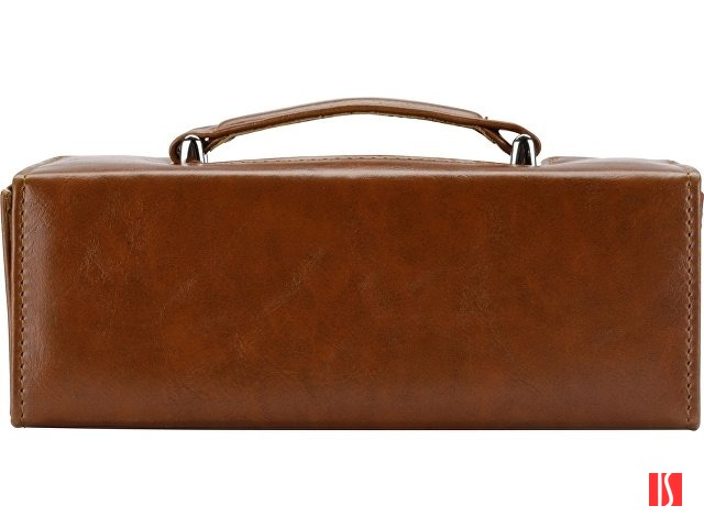 Настоящий сундучок из коричневого кожзама содержит целую кладезь полезных аксессуаров для чистки обуви. Набор не занимает много места при хранении и всегда готов прийти на помощь в поддержании чистоты вашей обуви. В набор входит 8 предметов. На футляр можно нанести логотип. Заказать с нанесением логотипа от компании «Синтезис».