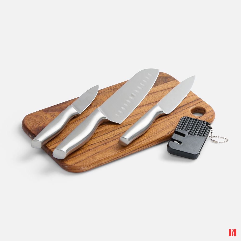 Этот компактный и стильный набор аккуратно упакован в лаконичную сумку и всегда готов к действию. Три ножа со сбалансированными лезвиями и прочная деревянная доска — персональный арсенал для любителей мясных блюд. Можно забыть про неудобства и хаос: с Meateam на пикнике мясо будет под контролем профессионала.