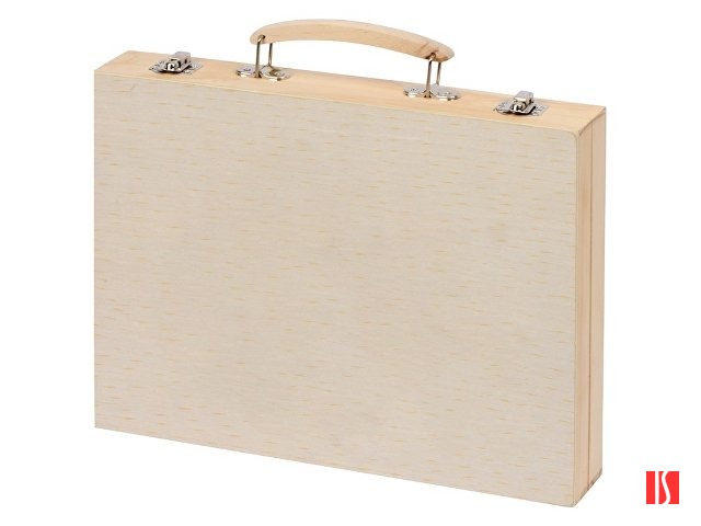 Набор из 67 предметов для рисования. Набор включает 12 акварельных красок, 12 цветных карандашей, 12 масляных пастелей, 12 фломастеров, 12 мелков, клей, резинку, точилку, карандаш HB, линейку и кисточку. Набор упакован в деревянный чемоданчик. Заказать с нанесением логотипа от компании «Синтезис».