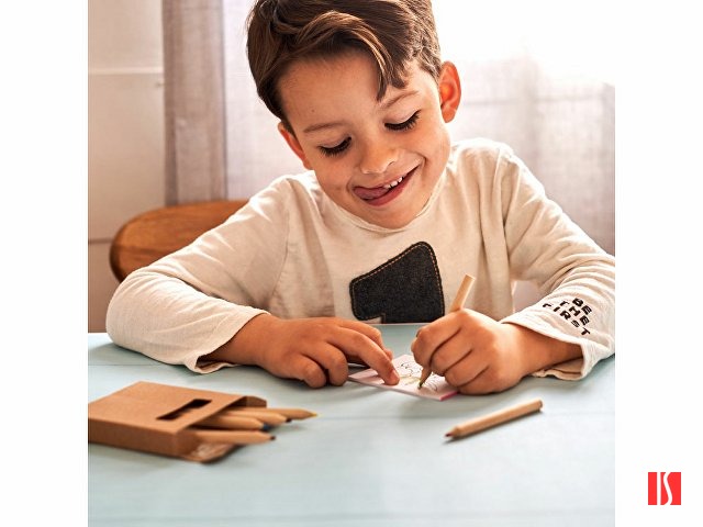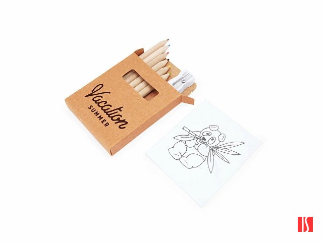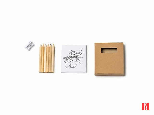 Набор для рисования для детей. В комплекте блокнот на 20 листов с рисунками, 6 цветных карандашей и точилка. Заказать с нанесением логотипа от компании «Синтезис».