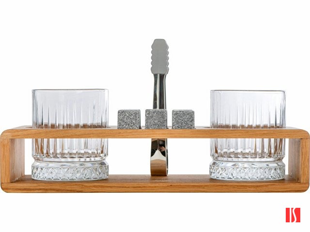деревянная подставка 28 х 11,6 х 5,7 см, бокал 210 мл- 2 шт, камень для виски 2 х 2 см- 6 шт, щипцы, упаковочная коробка