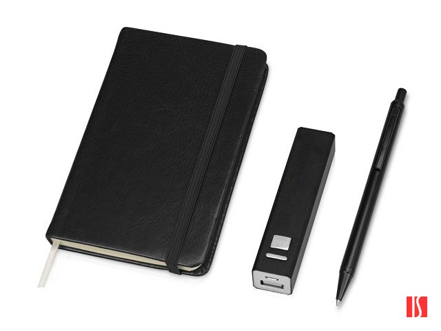 В набор «Ион» входят предметы, без которых не обойтись современному деловому человеку. В упаковочную коробку вложены портативное зарядное устройство емкостью 3000 mAh, провод USB со сменными разъемами: micro-USB, mini-USB, Lightning, линованный блокнот формата А6 с закладкой, эластичной застежкой и удобным карманом для карточек и записок, а также металлическая шариковая ручка с нажимным механизмом. Набор «Ион» – отличный подарок для тех, кто идет в ногу со временем. Заказать с нанесением логотипа от компании «Синтезис».