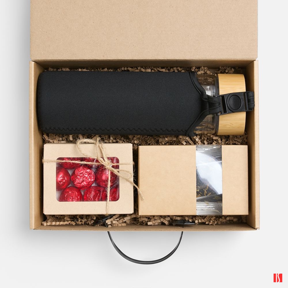 Грильяж в наборе порадует богатством вкуса, а чай подарит силы и энергию на целый день. Термобутылка из боросиликатного стекла подходит для традиционного и холодного заваривания, что особенно ценно для всех чайных гурманов: ее удобно брать с собой, наслаждаясь любимым напитком, когда захочется. Заказать с нанесением логотипа от компании «Синтезис».