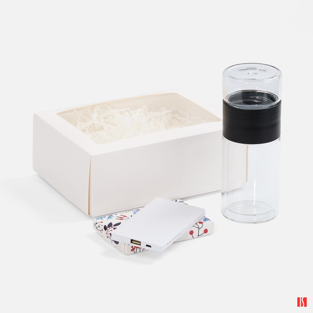 Яркий набор Invigo будет к месту в любой ситуации, когда требуется немного подзарядиться: буквально — благодаря внешнему аккумулятору — и всегда оставаться на связи; морально — благодаря свежезаваренному чаю и вкуснейшей полезной пастиле — чтобы напитаться исключительно положительными эмоциями. Заказать с нанесением логотипа от компании «Синтезис».