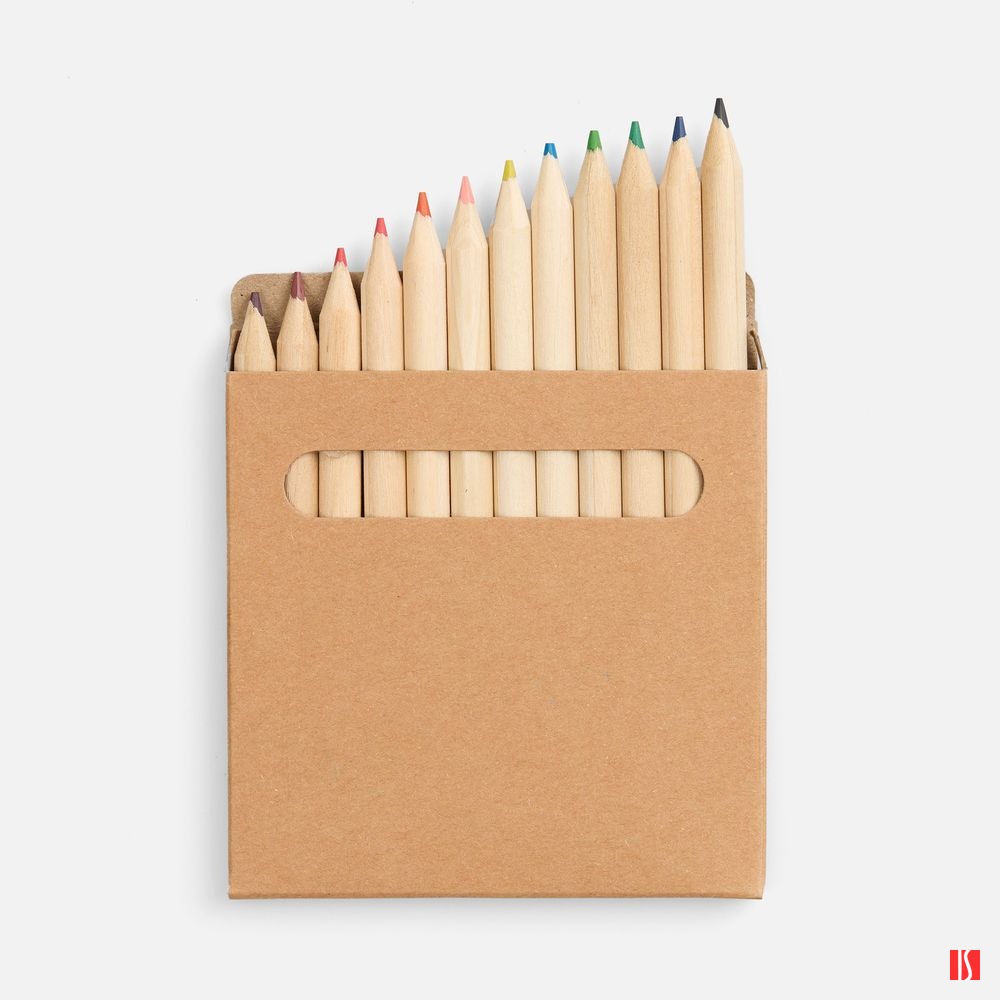 12 цветных мини-карандашей в картонной упаковке с окошком. Заказать с нанесением логотипа от компании «Синтезис».