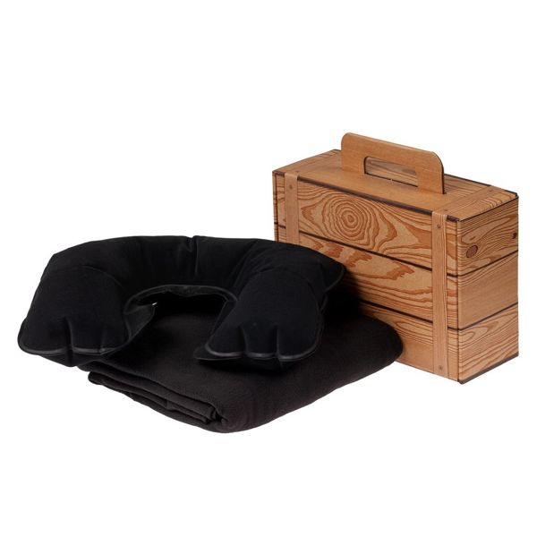 Надувная подушка под шею и уютный флисовый плед — необходимымй минимум для каждого путешественника. Заказать с нанесением логотипа от компании «Синтезис».