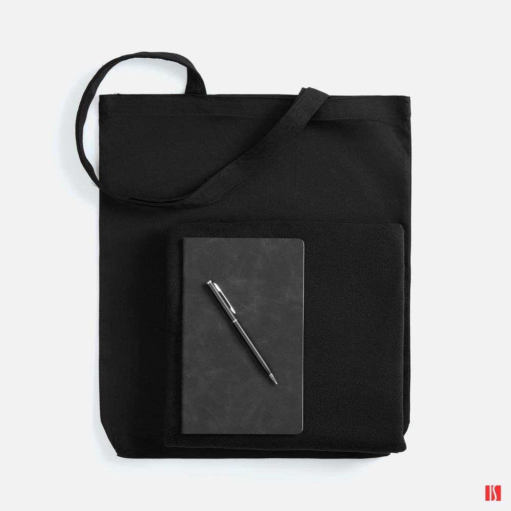 Набор с основной канцелярией и пледом — классика жанра в уютном исполнении. С компактным блокнотом под рукой будет удобно делать заметки в любое время, а легкий флисовый плед позволит выразить самые теплые пожелания.