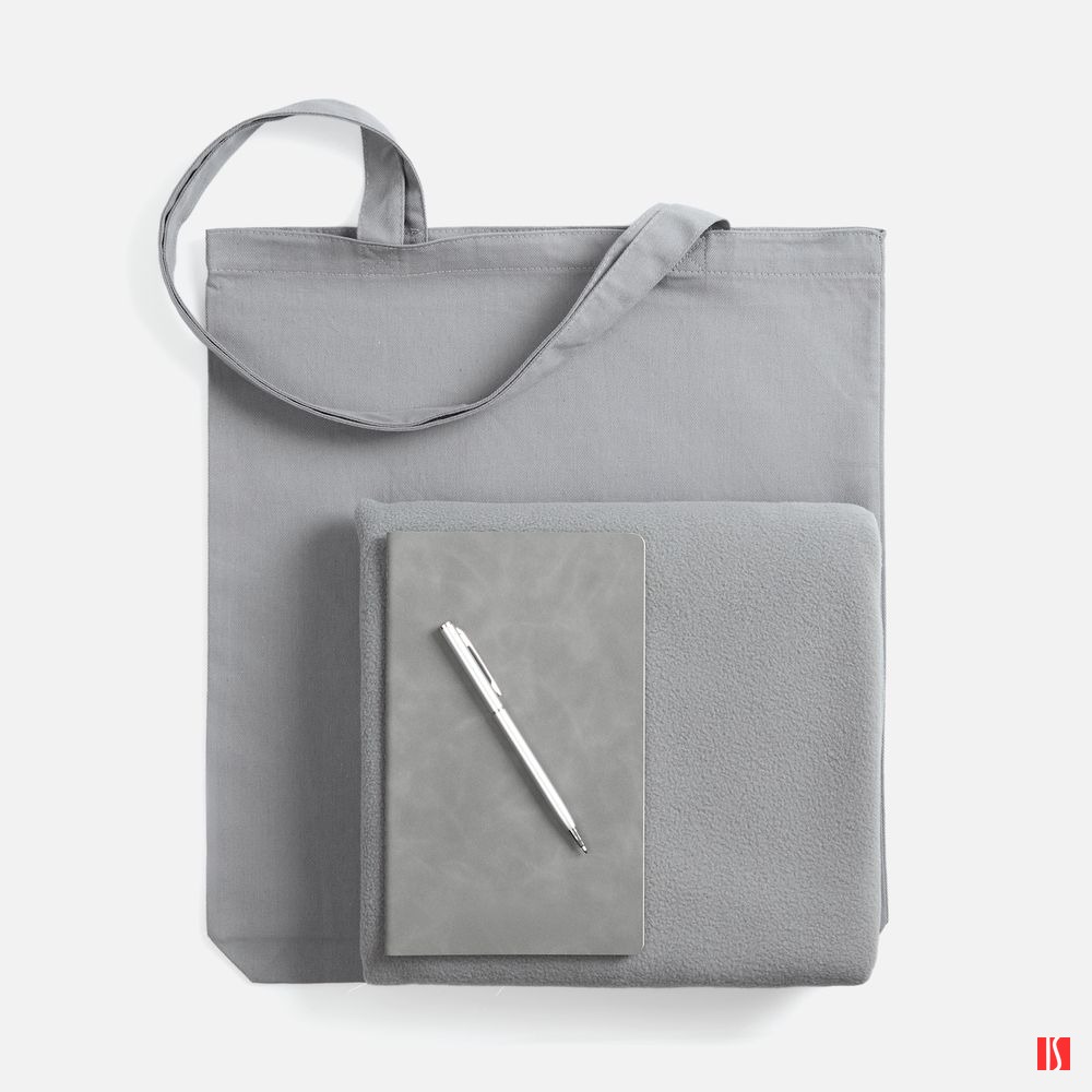 Набор с основной канцелярией и пледом — классика жанра в уютном исполнении. С компактным блокнотом под рукой будет удобно делать заметки в любое время, а легкий флисовый плед позволит выразить самые теплые пожелания.