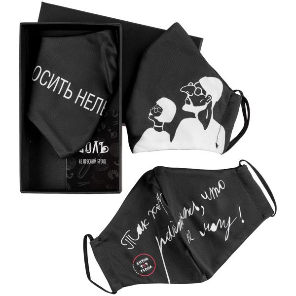 Маска упакована в индивидуальный пакет с липким краем. Заказать с нанесением логотипа от компании «Синтезис».