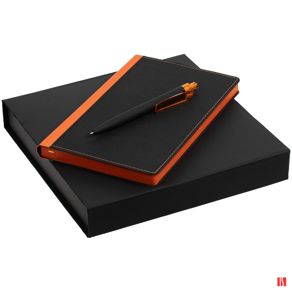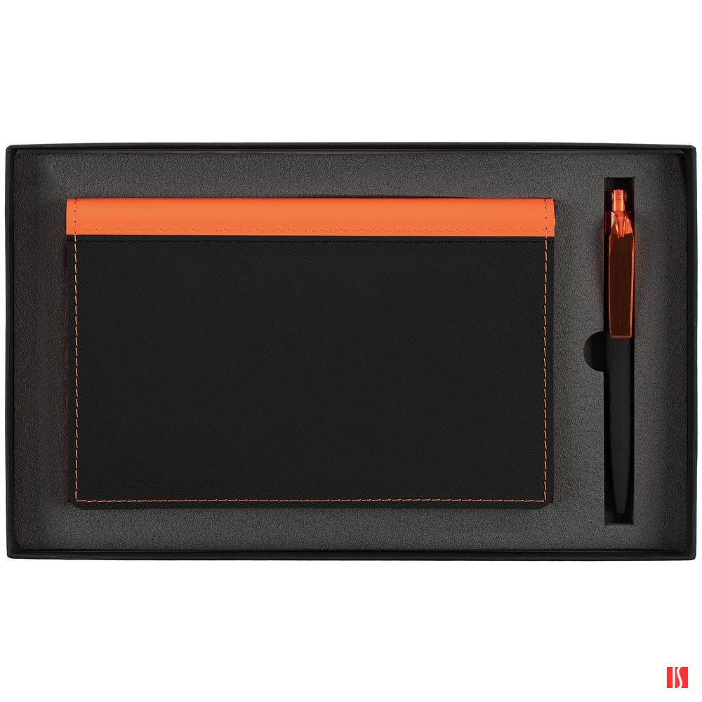 Стильный двухцветный ежедневник с гибкой обложкой и цветным обрезом, а также ручка в тон. Заказать с нанесением логотипа от компании «Синтезис».