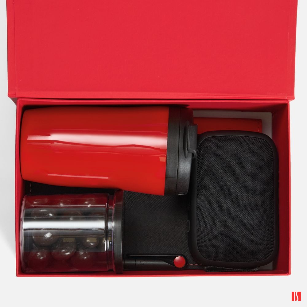 Набор для личностей на драйве: когда любимая музыка помогает структурировать бизнес-планы и творческие идеи, а кофе с вкусняшкой — не сбавлять оборотов. Заказать с нанесением логотипа от компании «Синтезис».