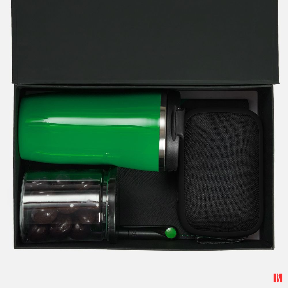 Набор для личностей на драйве: когда любимая музыка помогает структурировать бизнес-планы и творческие идеи, а кофе с вкусняшкой — не сбавлять оборотов. Заказать с нанесением логотипа от компании «Синтезис».