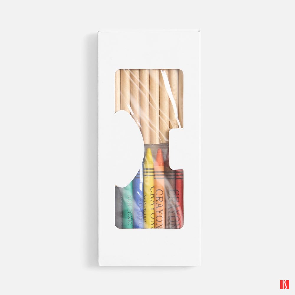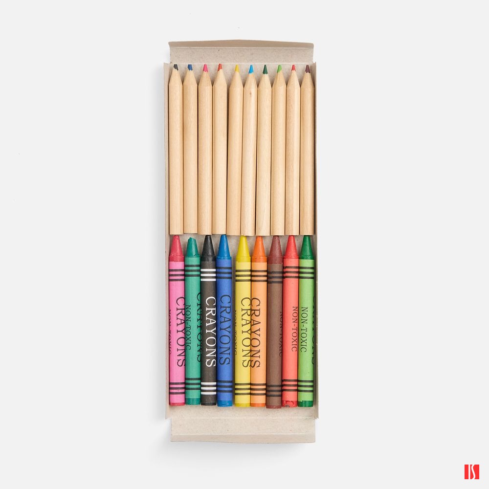 Набор из 10 цветных карандашей и 9 восковых мелков. Заказать с нанесением логотипа от компании «Синтезис».