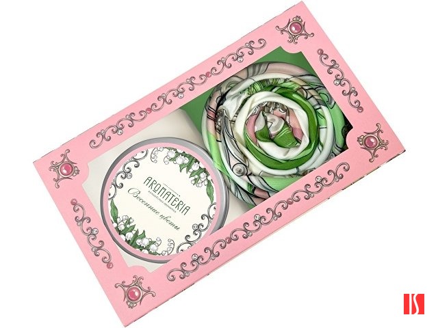 Набор: платок «Ландыши» и свеча «Весенние цветы»