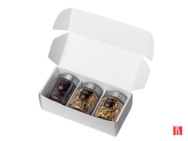 Чёрный чай в наборе относится к категории TGFOP, - помимо молодых чайных листиков он содержит нераскрывшиеся листовые почки чайного куста, которые придают чаю более мягкий и нежный вкус. Заказать с нанесением логотипа от компании «Синтезис».