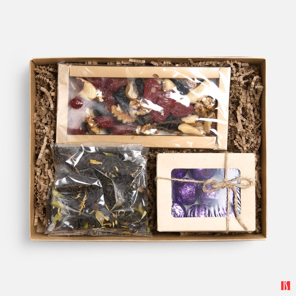 Иногда для счастья нужно совсем немного: тепло близких людей рядом и кружка теплого любимого напитка в руках для сладкого перерыва. Набор Quality Time создан именно для таких уютных моментов: чтобы время определенно было проведено с пользой, достаточно на домашние посиделки захватить с собой комплект из ароматного чая, полезной орехово-цукатной смеси и благородного грильяжа.