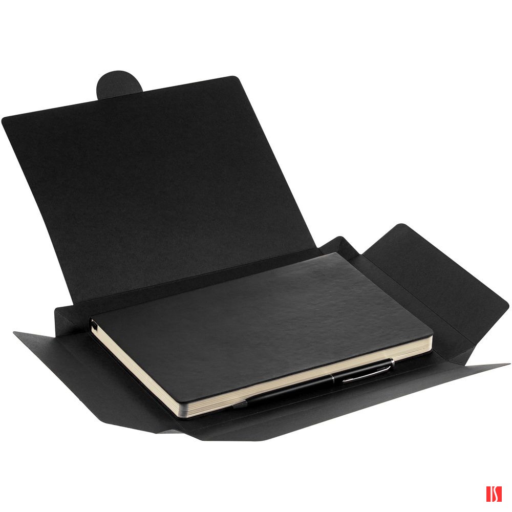Недатированный ежедневник с гибкой обложкой из материала Latte с ляссе в цвет обложки, а также ручка в тон — в подарочной коробке из дизайнерского картона. Заказать с нанесением логотипа от компании «Синтезис».