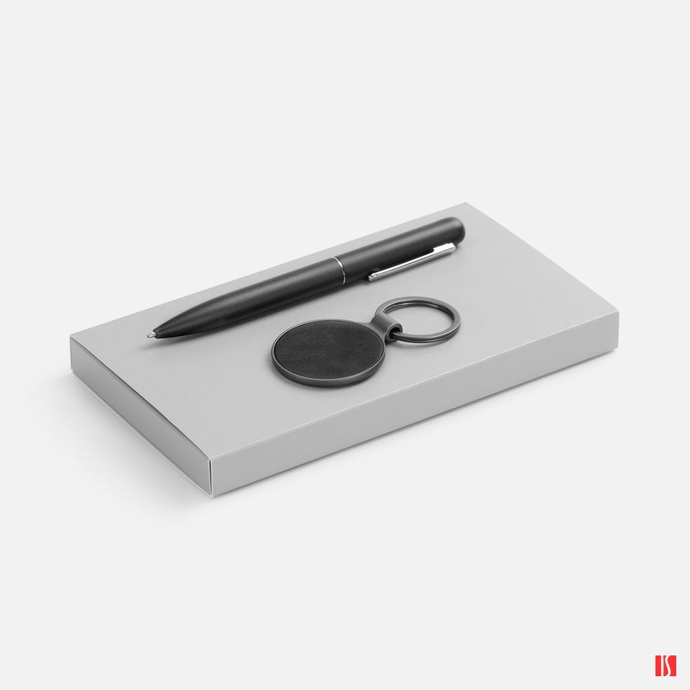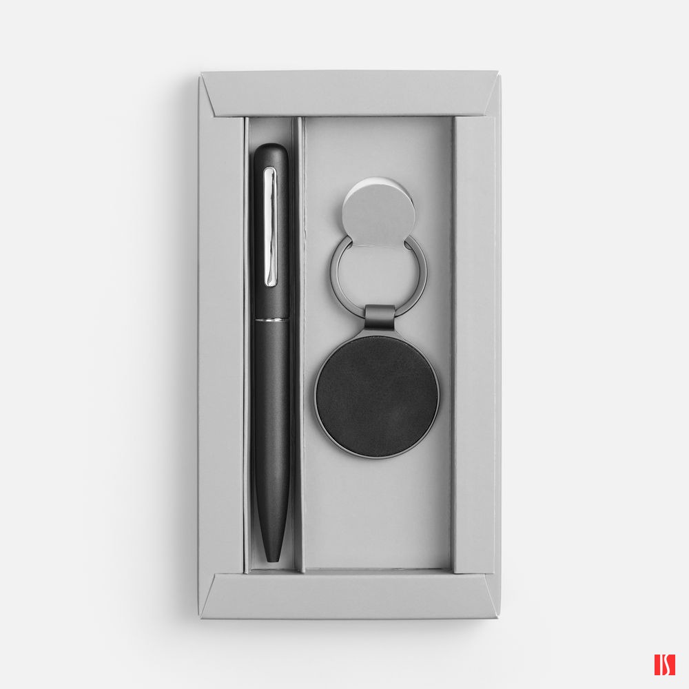 Металлический брелок с элегантной вставкой из искусственной кожи идеально подходит для гравировки и превращает подарок в уникальный символ бренда. Надежная ручка с плавным письмом дополняет комплект —идеальный дуэт для деловых партнеров и клиентов.