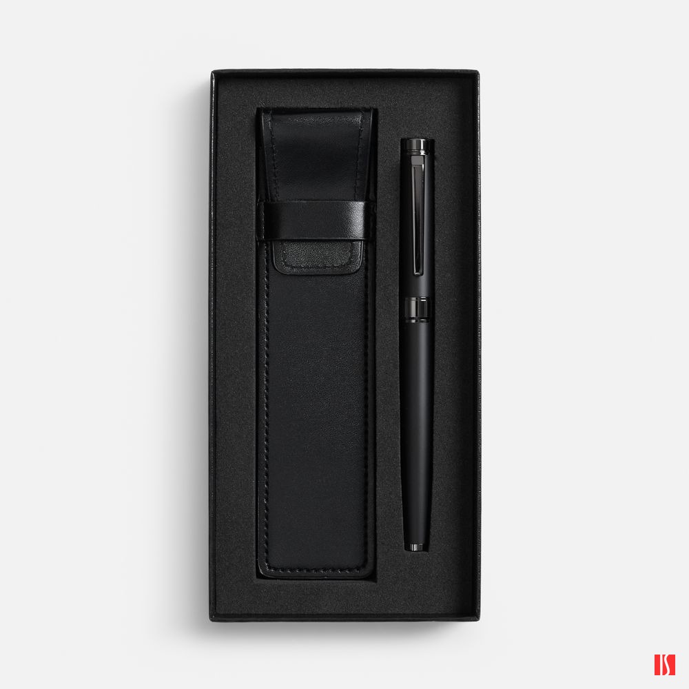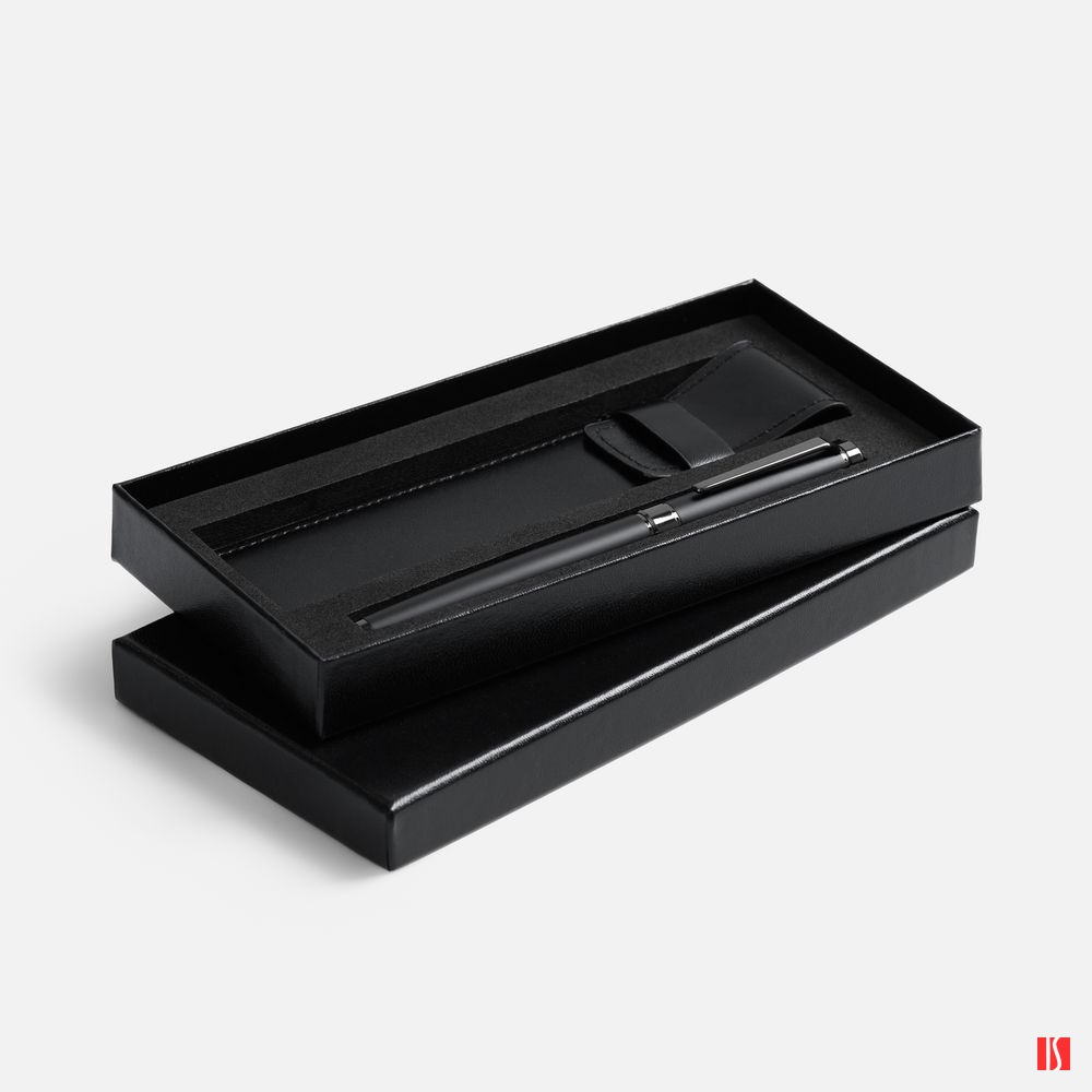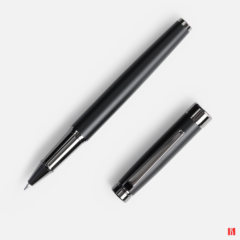 Роллер в матовом корпусе с глянцевыми деталями в оттенке gun metal выглядит одновременно сдержанно и презентабельно, а чехол из искусственной кожи не только защищает ручку от пыли и царапин, но и дополнительно подчеркивает статус владельца.
