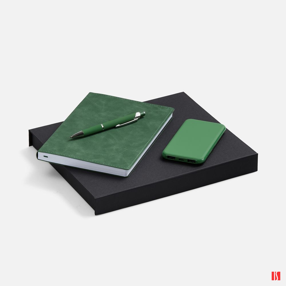 Набор с внешним аккумулятором позволит всегда оставаться на связи, а бессменная офисная классика — ежедневник и ручка — помогут направить энергию в правильное русло!