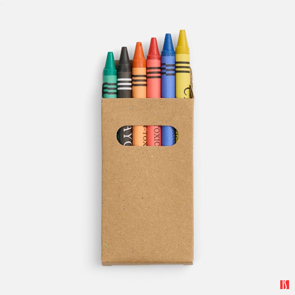 6 цветных восковых мелков Crayons в картонной упаковке с окошком. Заказать с нанесением логотипа от компании «Синтезис».