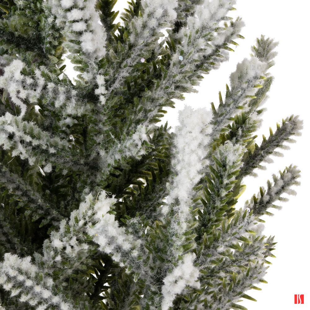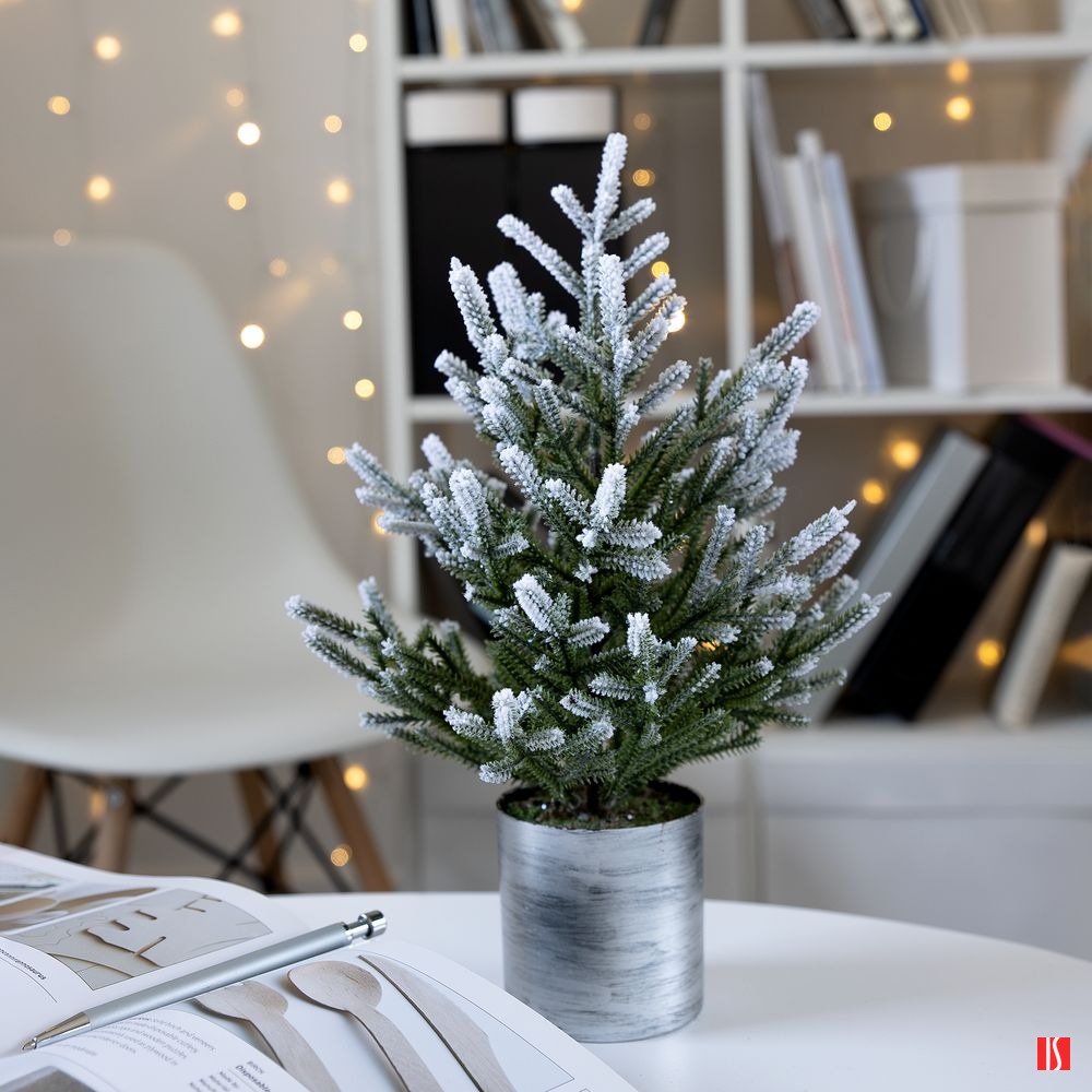 Подставка создает ощущение, что в дом занесли настоящее растение в горшке, а веточки, словно покрытые снегом, добавляют особой атмосферности и праздничности. С литыми иголками хвоя выглядит натуральнее, а силуэт елочки — живее и реалистичнее.