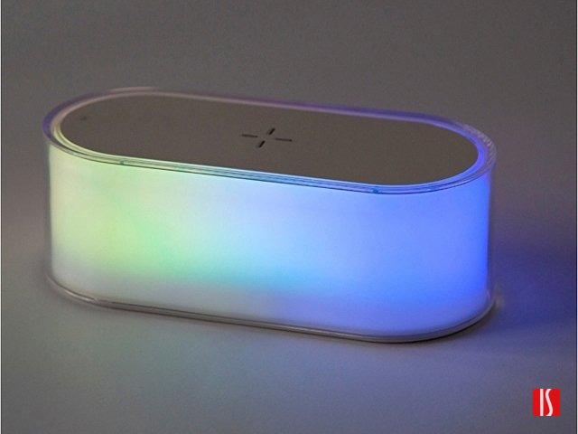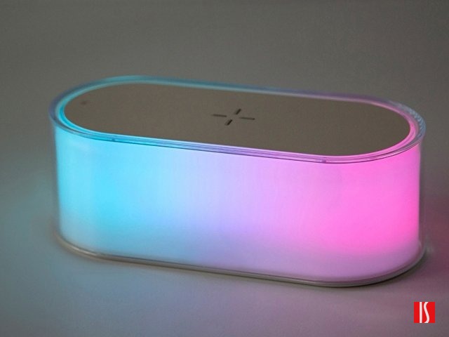 Заказать с нанесением логотипа от компании «Синтезис». Ночник с RGB-подсветкой из 7 переливающихся цветов. Также есть режимы стандартного и яркого освещения теплым светом. Ночник выполняет функцию зарядной станции для устройств, поддерживающих беспроводную зарядку стандарта Qi мощностью 15 Вт*. Функция ночника работает без подключения к сети благодаря встроенному аккумулятору на 400 мАч. Функция беспроводной зарядки работает только при питании от сети. Устройство можно брендировать методом УФ-печати, тампопечати, а также цифровой печати.
