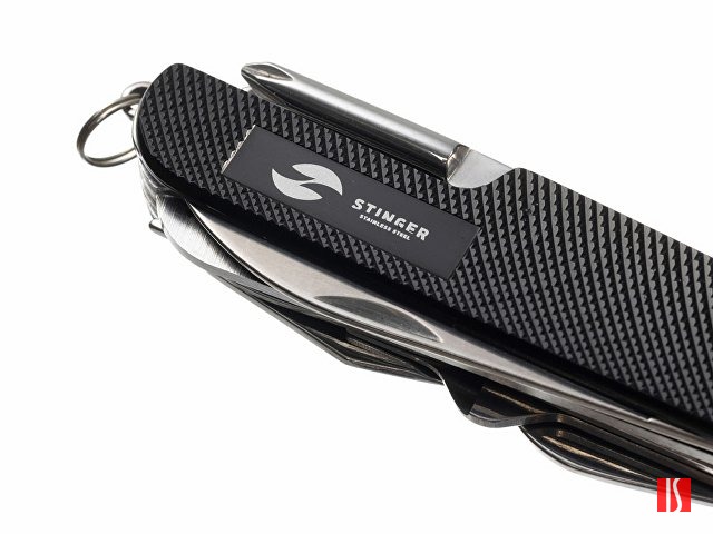Нож перочинный Stinger, 89 мм, 15 функций, материал рукояти: алюминий (чёрный)