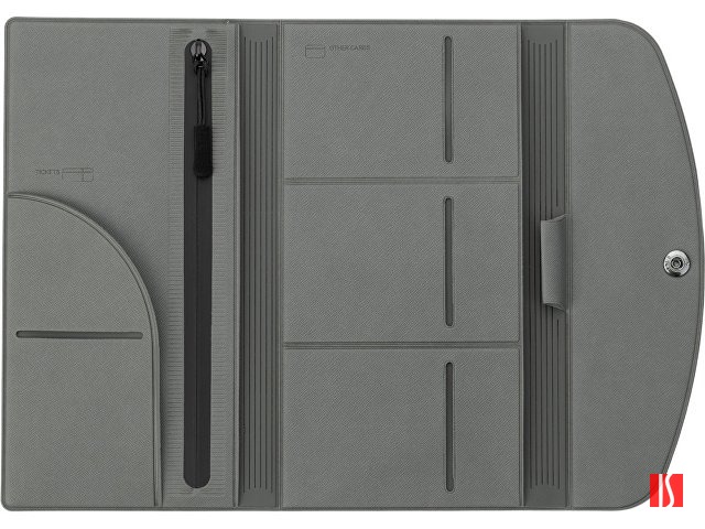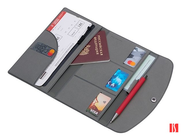 Органайзер для документов на кнопке с отделением для купюр и ручки, упаковка в индивидуальный пакет, серый