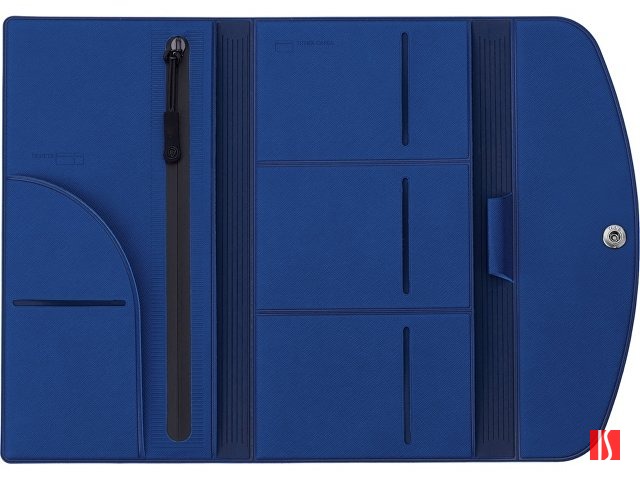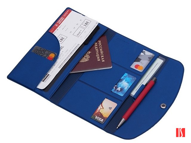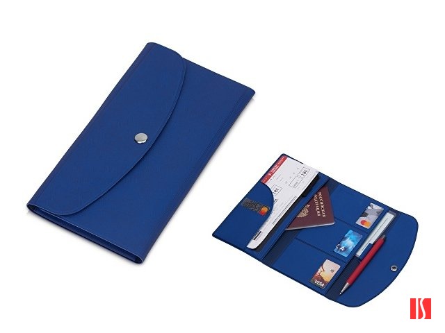 Органайзер для документов на кнопке с отделением для купюр и ручки, упаковка в индивидуальный пакет, синий/темно-синий