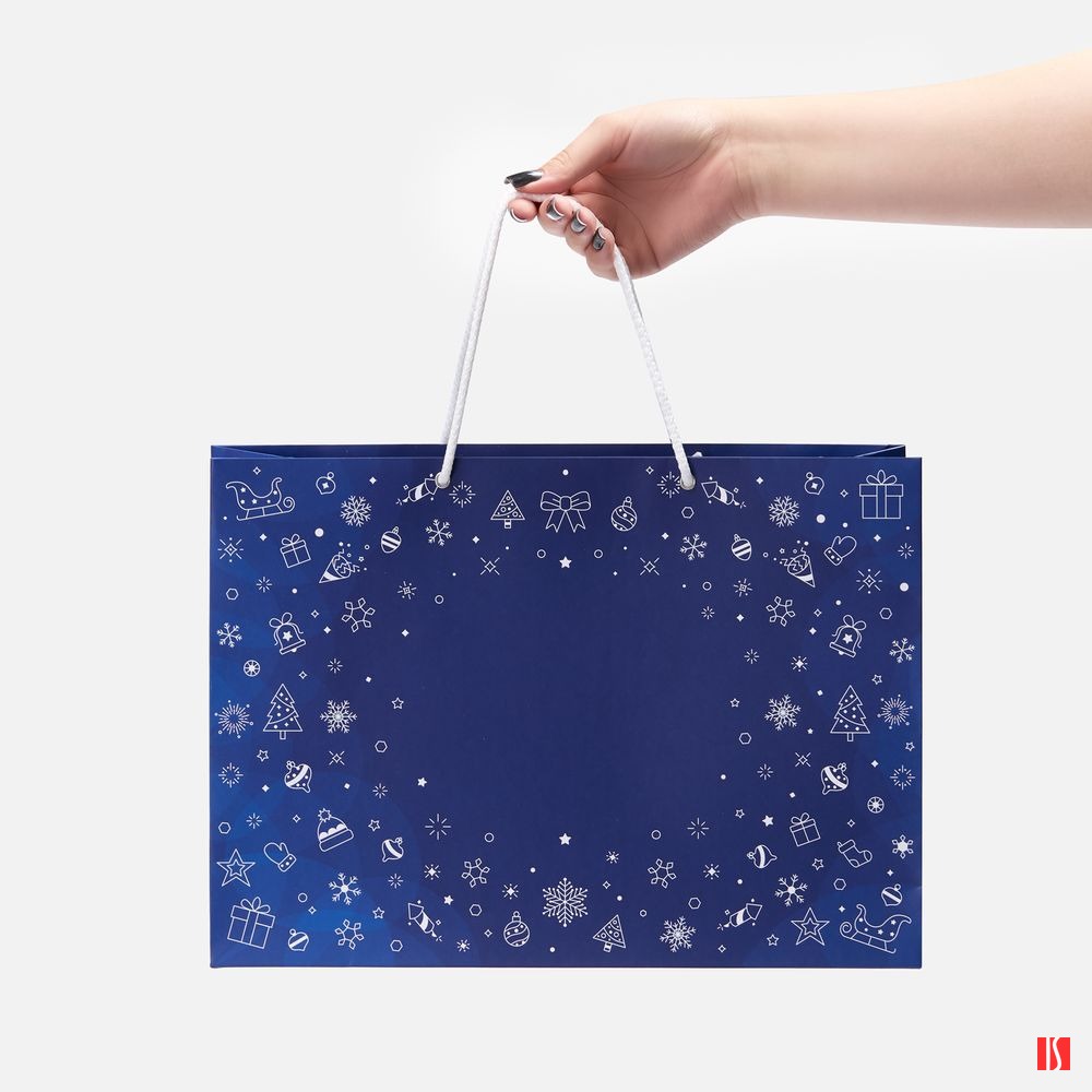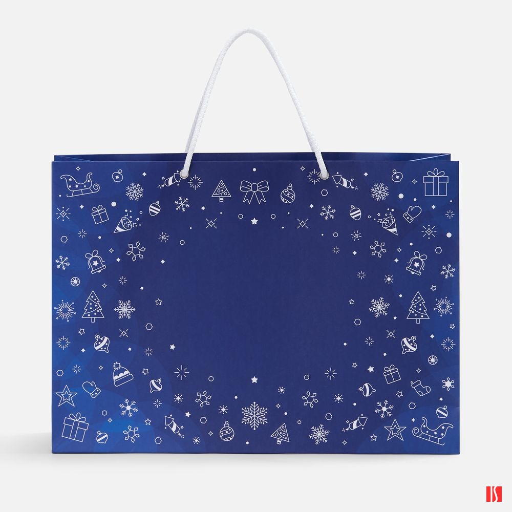 Заказать с нанесением логотипа от компании «Синтезис». Подарочный пакет серии Snowlace с новогодним паттерном — стильное дополнение к подарку!