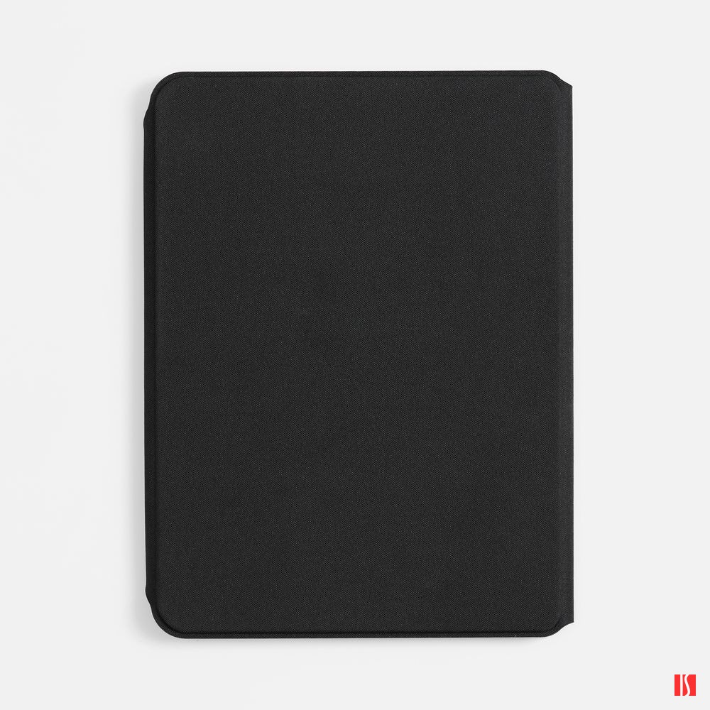 Обложка из ткани на магнитной застежке c деревянной шильдой: