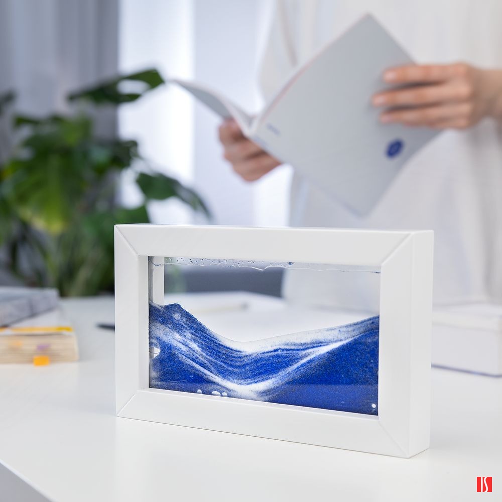 Песочный антистресс — это живая картина, в которой струящиеся в воде цветные песчинки создают неповторимые пейзажи. Наблюдение за невероятными образами позволит расслабиться и отвлечься от дел, успокоив глаза и мысли.