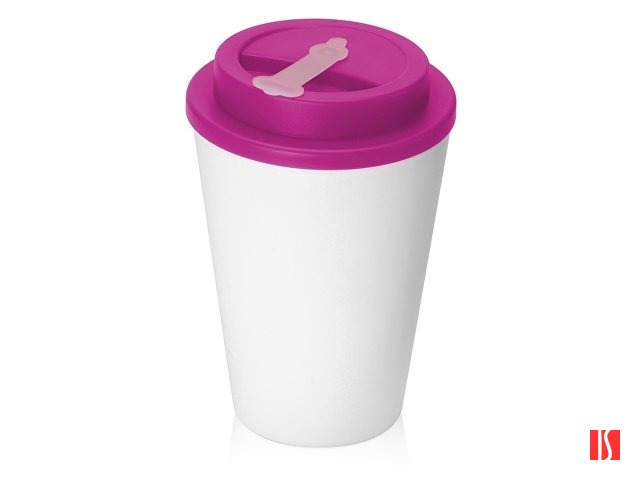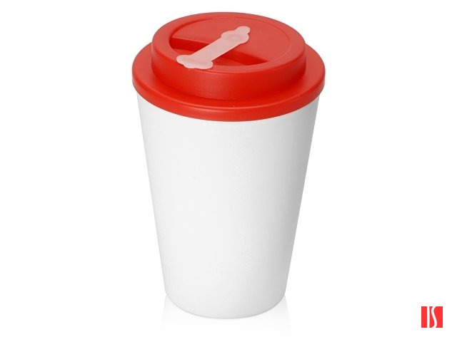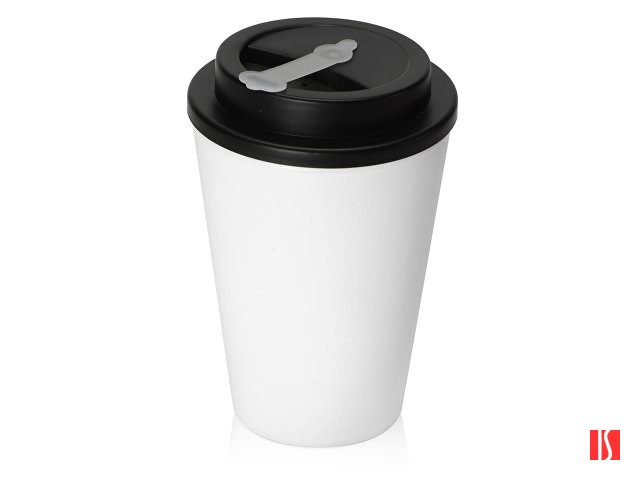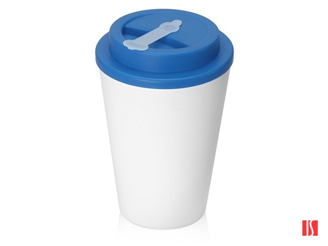 Пластиковый стакан Take away с двойными стенками и крышкой с силиконовым клапаном, 350 мл, белый/синий