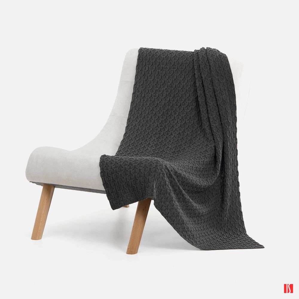 Глубина рельефного орнамента добавляет динамику даже в монохромном исполнении. Плед Braidera — удачное сочетание декоративной выразительности и уютной функциональности.