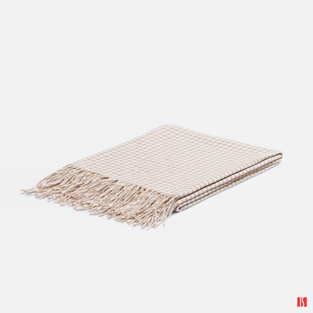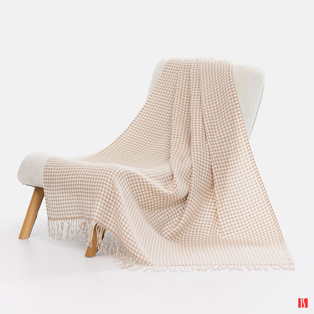 Графичный узор «гусиная лапка» (или «pied-de-poule») превращает изделие в изысканный интерьерный акцент, а бахрома добавляет ему элегантности и завершенности. Это воплощение безупречного вкуса и дань вневременной классике.