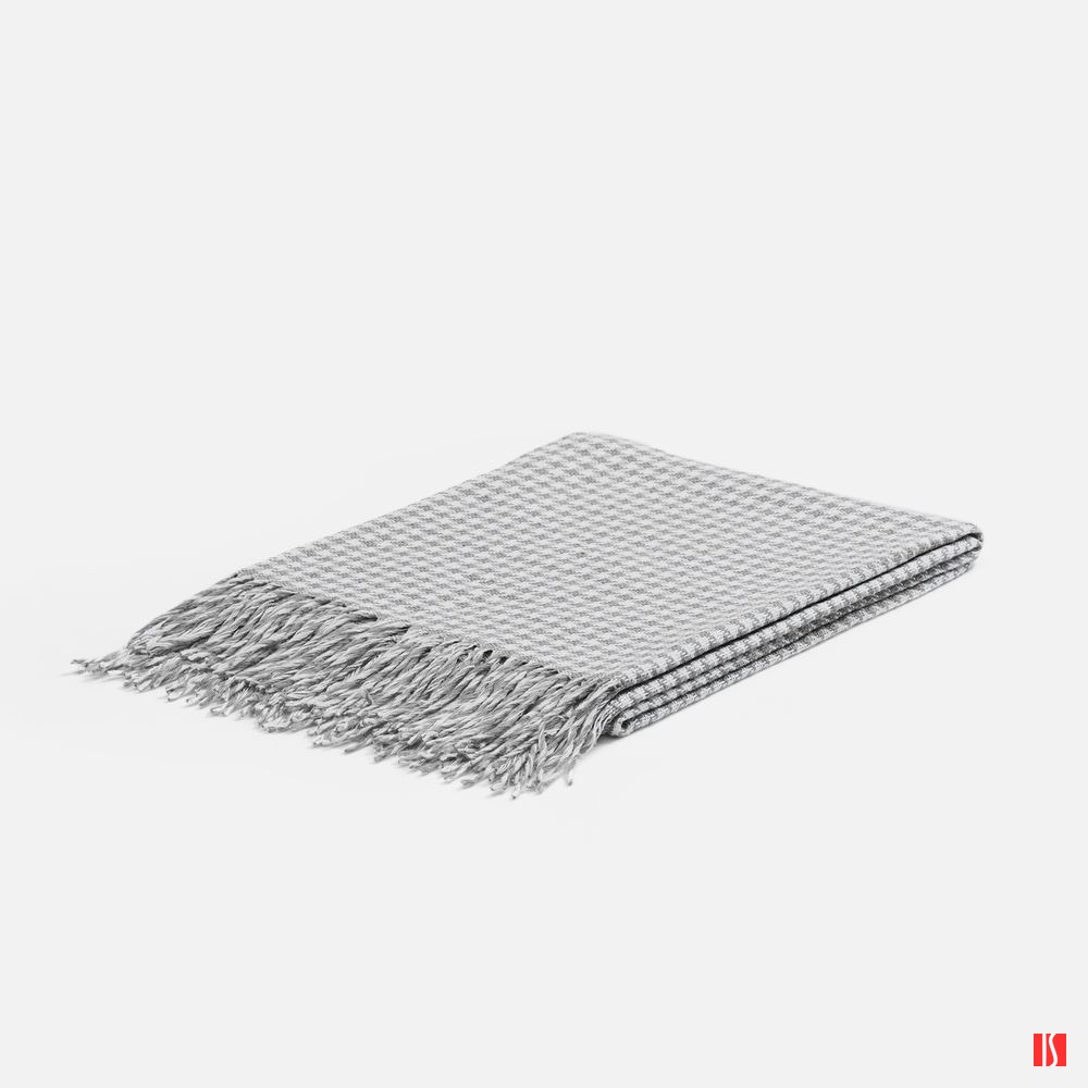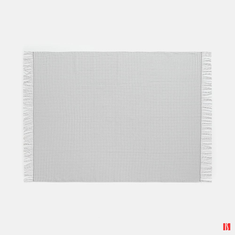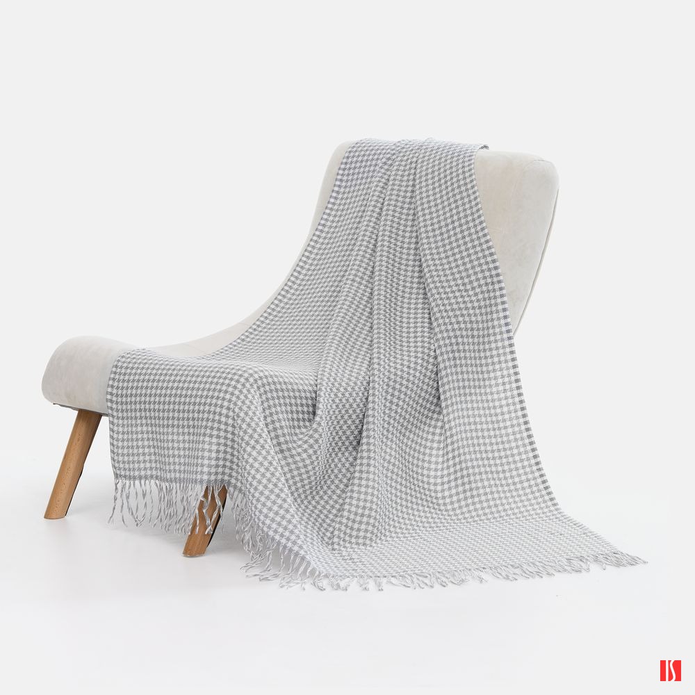 Графичный узор «гусиная лапка» (или «pied-de-poule») превращает изделие в изысканный интерьерный акцент, а бахрома добавляет ему элегантности и завершенности. Это воплощение безупречного вкуса и дань вневременной классике.