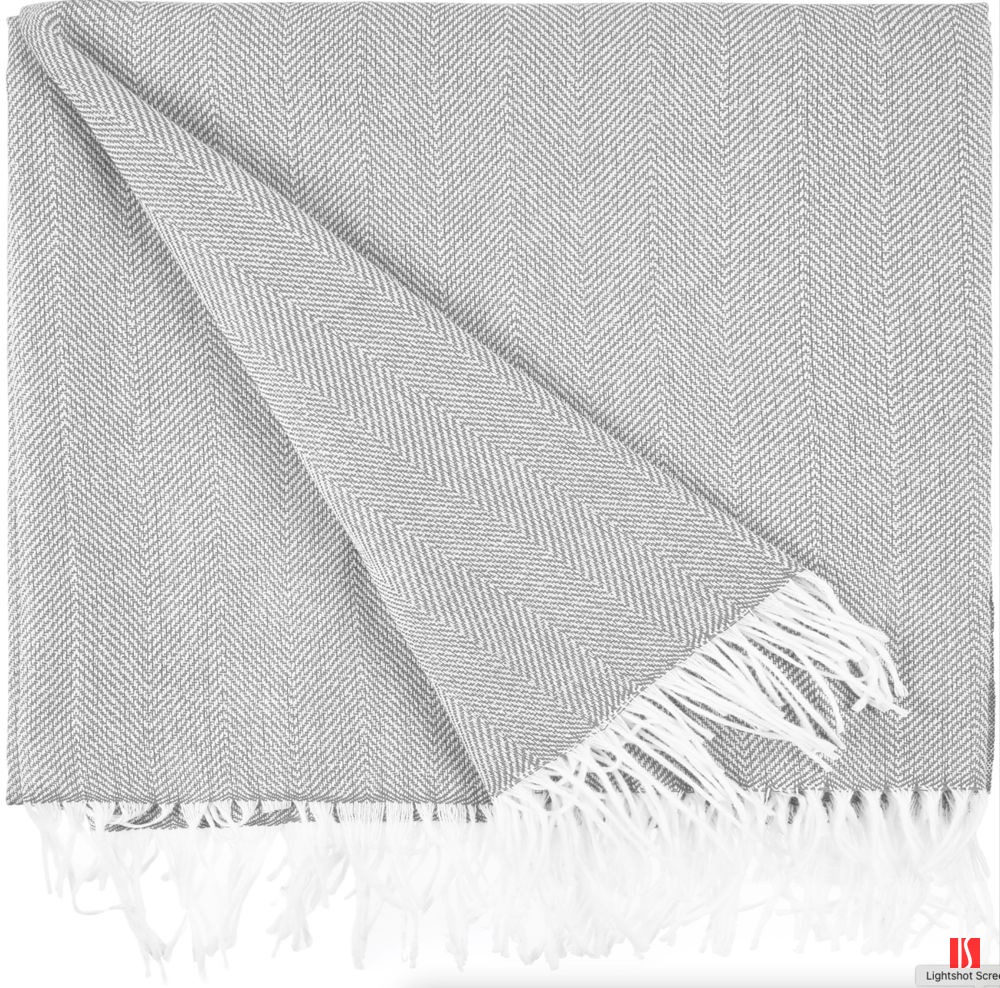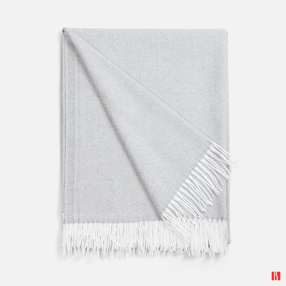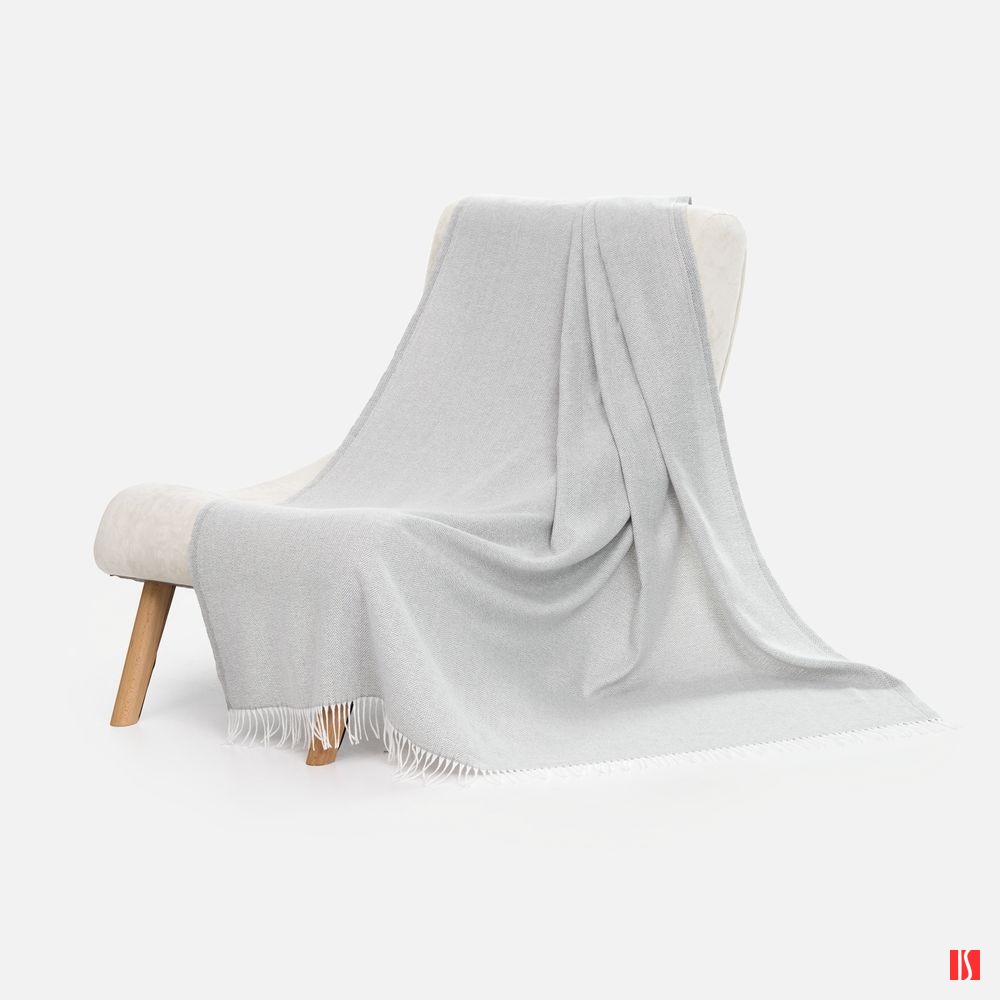 Классический рисунок «елочка» не слишком привлекает внимание, но в то же время добавляет изюминки. Смешанный состав пряжи продлевает срок службы и существенно облегчает уход за пледом.