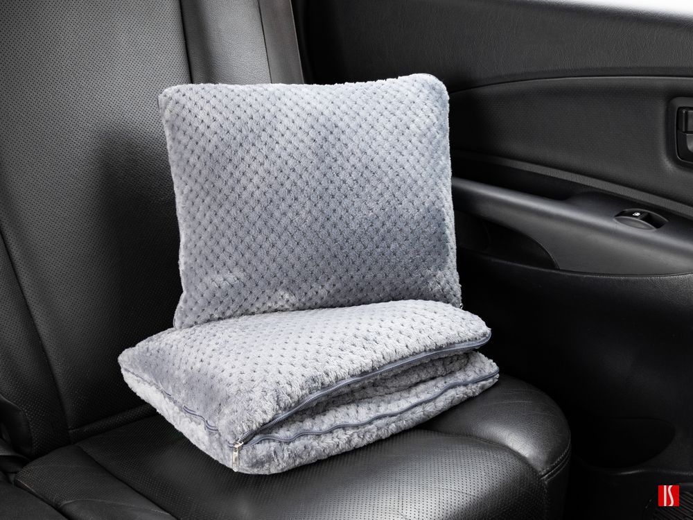 Мягкий плед из длинноворсового флиса легко трансформируется в подушку для удобного хранения — и сладкой послеобеденной дремы. Заказать с нанесением логотипа от компании «Синтезис».