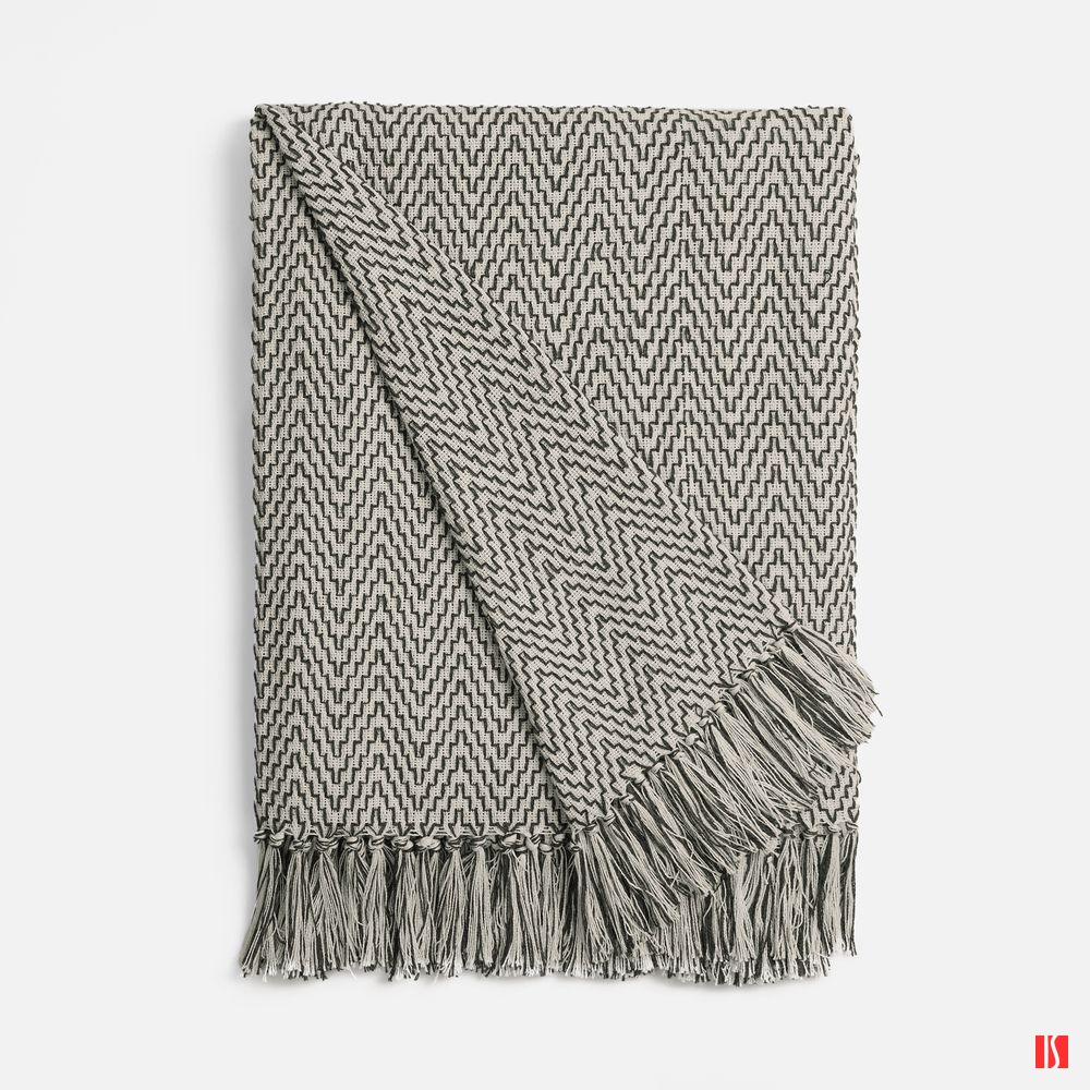 Плед Saltoro с мелким геометрическим узором отлично подойдет для создания стильной и уютной атмосферы, а также добавит приятный визуальный эффект в интерьер.