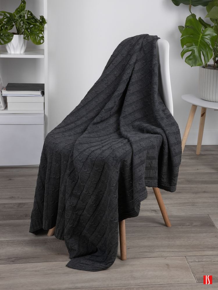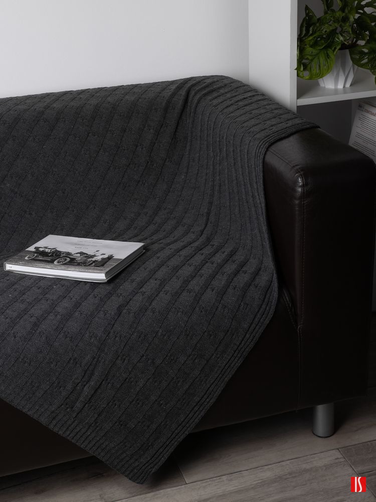 Вязаный плед фактурной вязки из меланжевой пряжи.