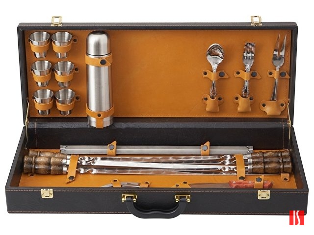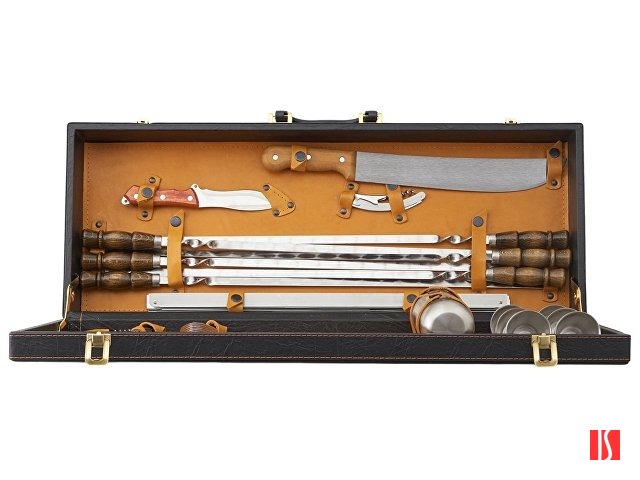 Все аксессуары надежно крепятся к кейсу кожаными ремешками на кнопке, обеспечивая удобство транспортировки и сохранность содержимого.