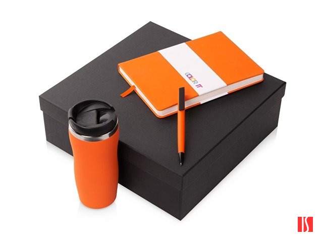 Подарочный набор c блокнотом С3, ручкой и термокружкой Mony Steel, оранжевый