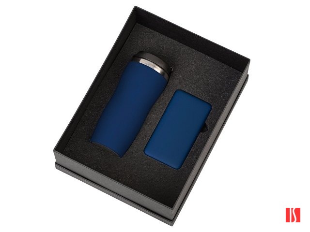 Подарочный набор c вакуумной термокружкой и повербанком С1, темно-синий